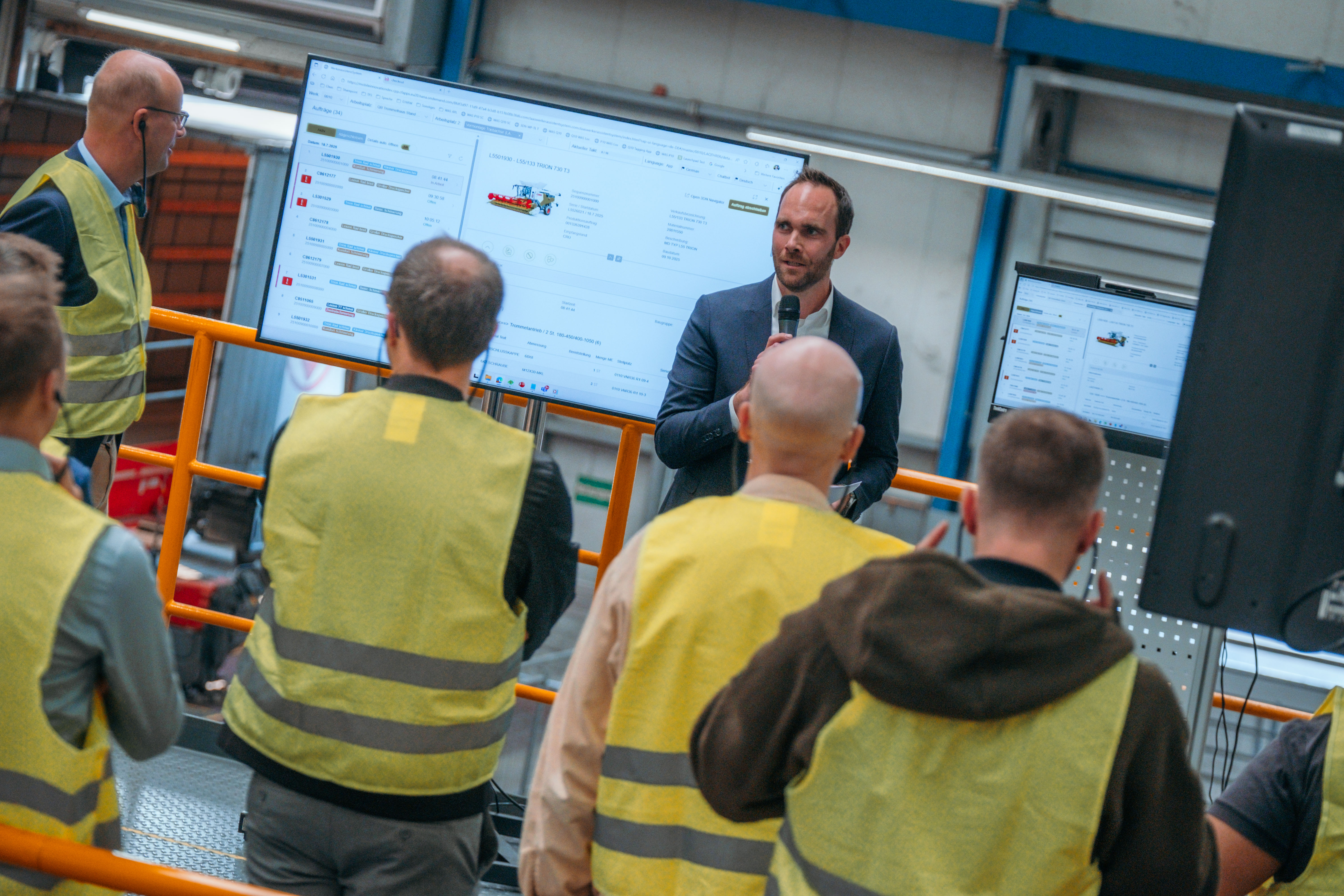 In the Datenfabrik.NRW project, CLAAS therefore developed a worker assistance system that initially digitally mapped the sequence of orders, color-coded them and displayed them via a web-based interface. But that was just the beginning. Further information was added step by step: product audit data, 3D models, technical changes and assembly instructions are now provided automatically.